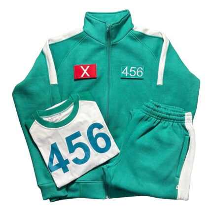 green tracksuit jacket and track pants with t-shirt and customizable number, Removable Number Patches Unisex