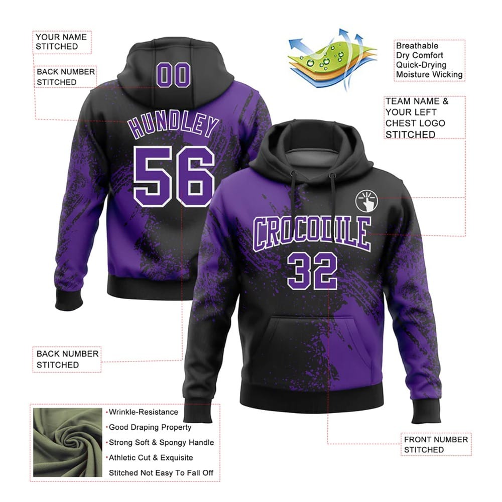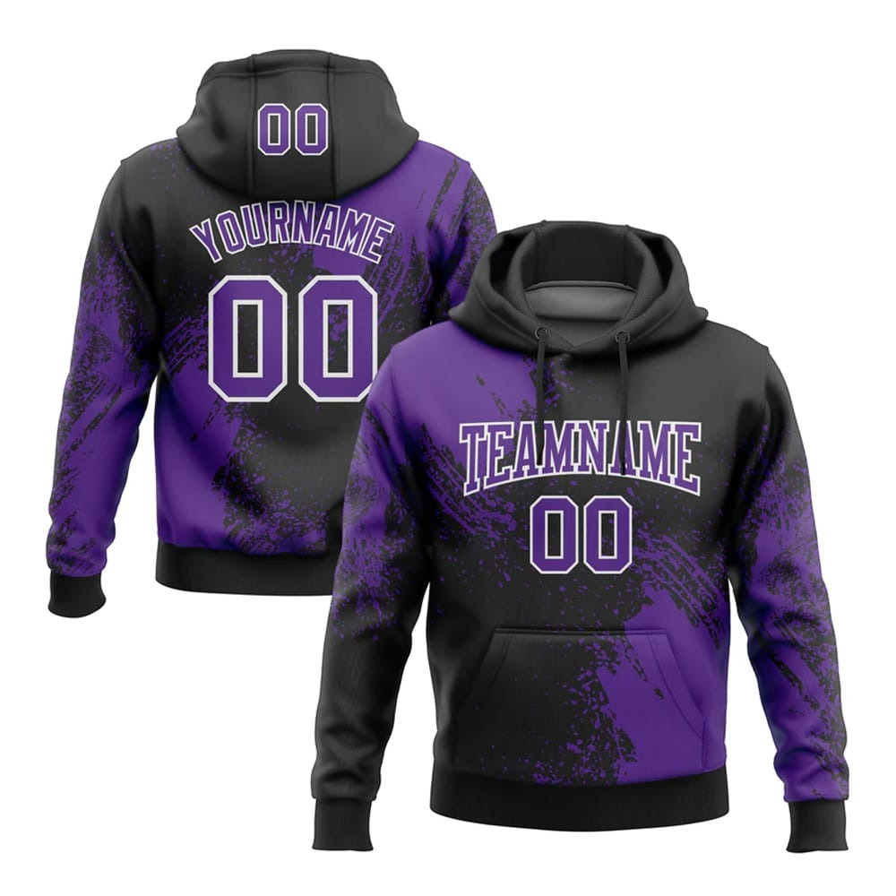 - Custom Stitched Black Purple-White 3D Pattern Design Abstract Brush Stroke Sports Pullover Sweatshirt Hoodie