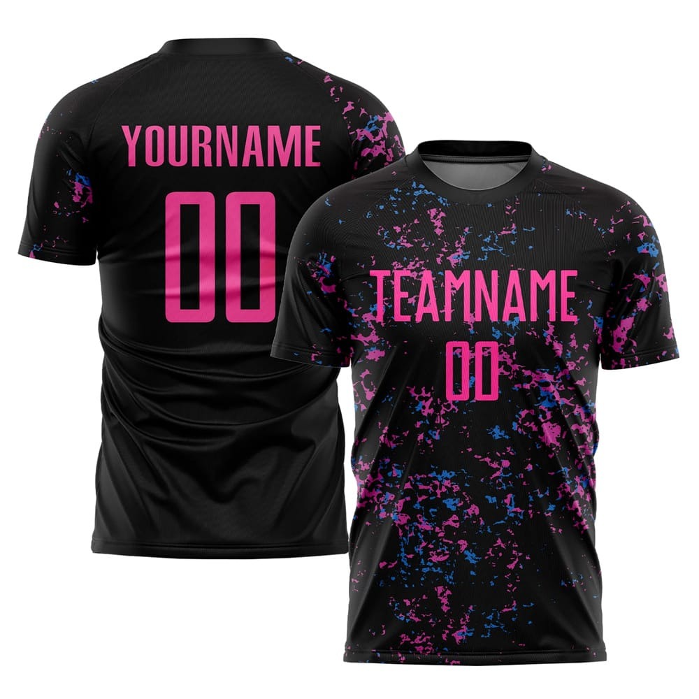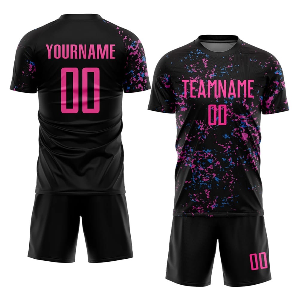 Home SPORTS WEARS Soccer Uniforms Custom Black Pink-Light Blue