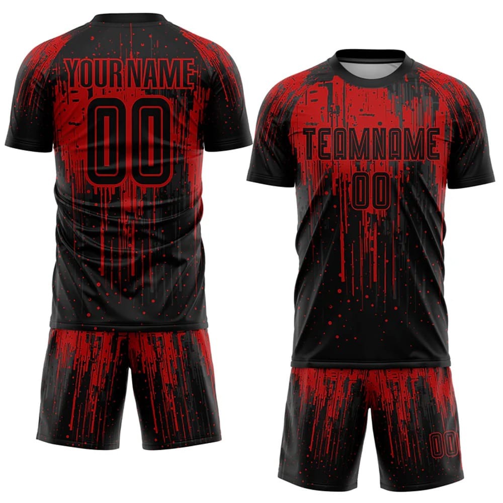 Home SPORTS WEARS Soccer Uniforms Custom Red Black Sublimation Soccer