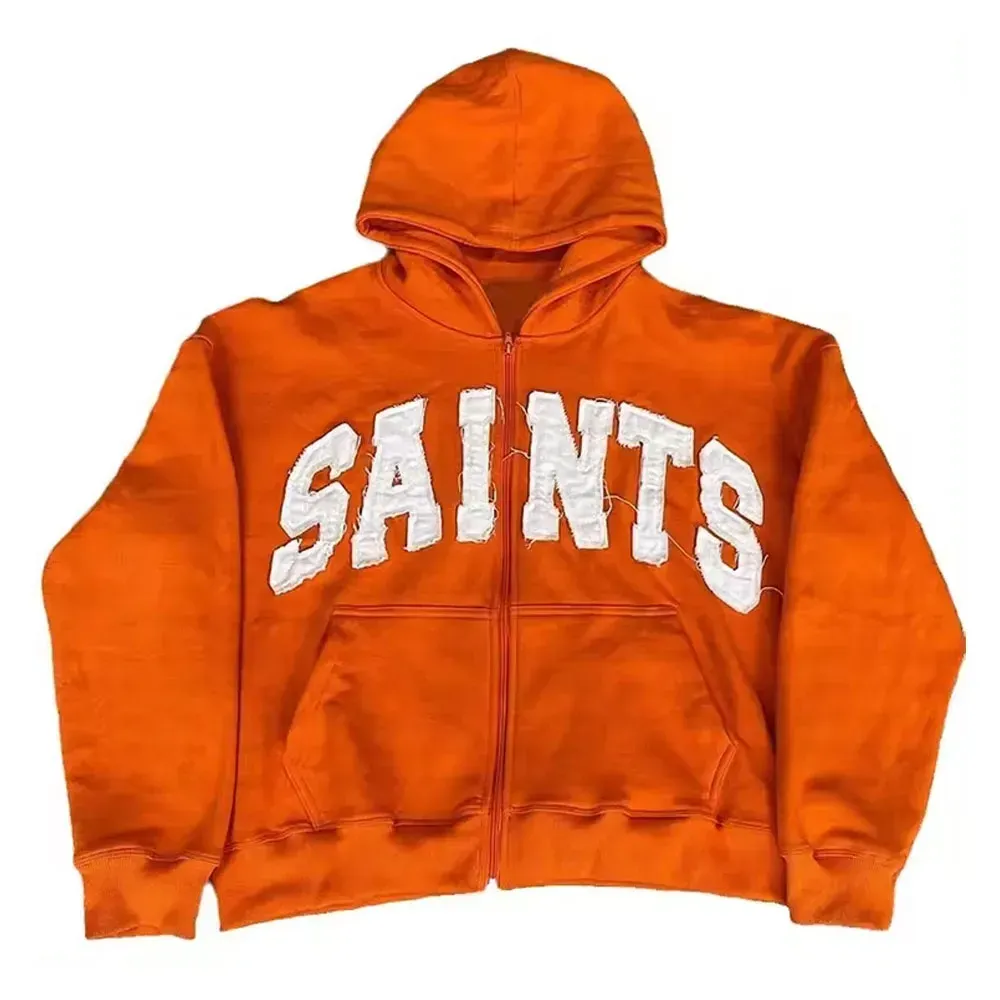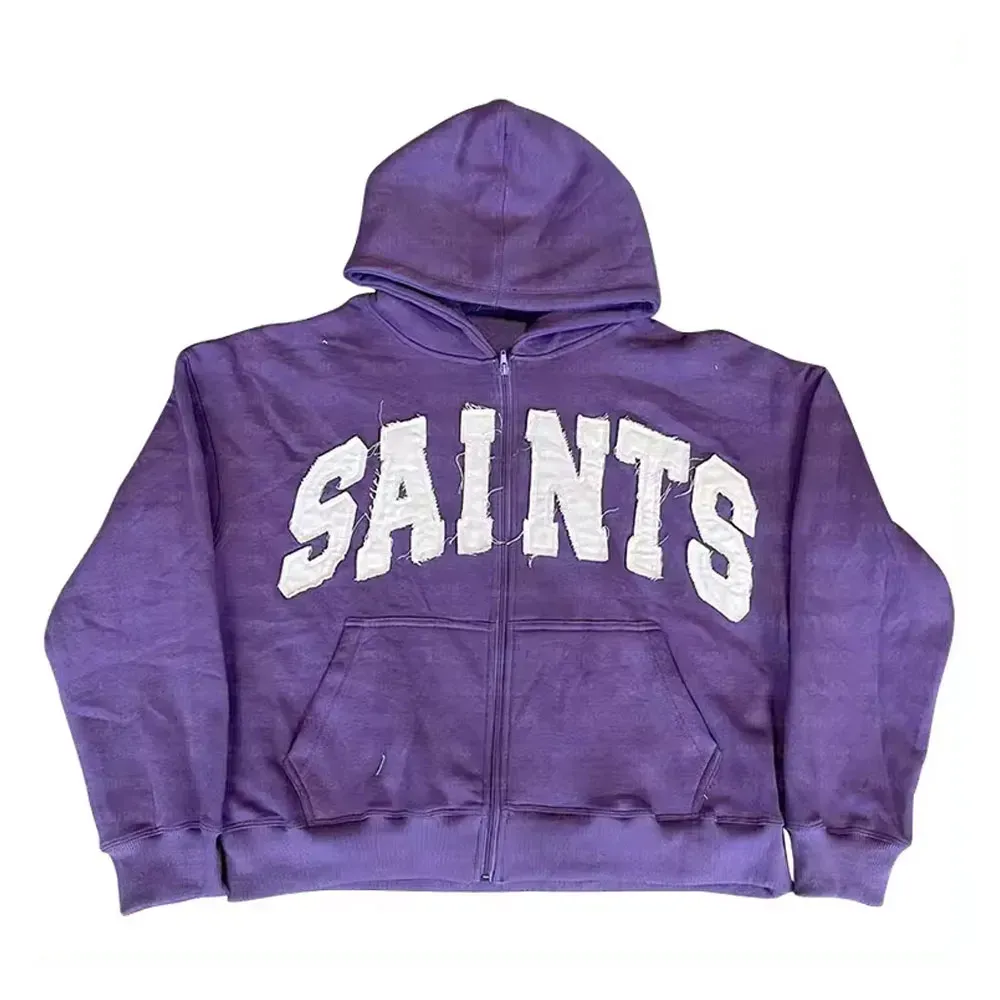 - Distressed Embroidery Patch Unisex Printed Acid Wash Hoodie