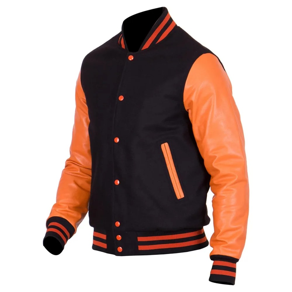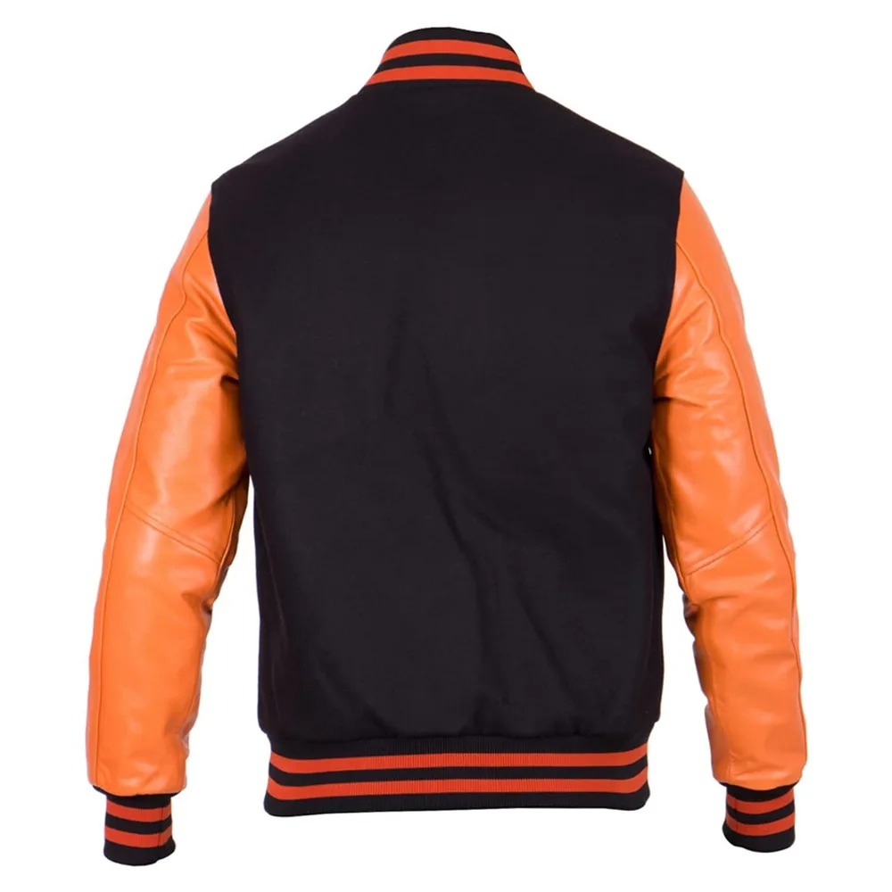 - Mens Orange Black Varsity Letterman Jacket